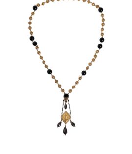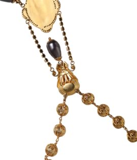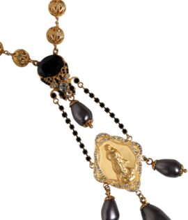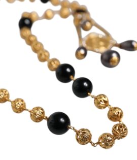 Dolce & Gabbana Gold Chain Brass Black Beaded Rosary Style Necklace