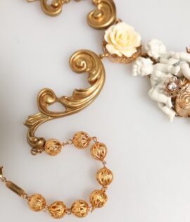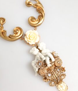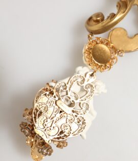 Dolce & Gabbana Gold Ceramic Crystal Cherub Baroque Pendant Necklace