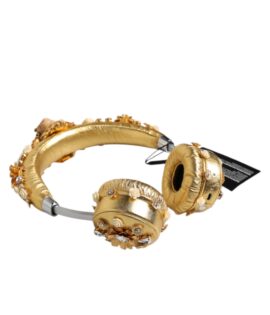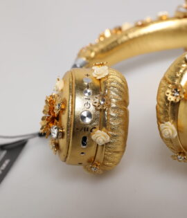 Dolce & Gabbana Gold Leather Floral Crystal Angel Headset Headphones