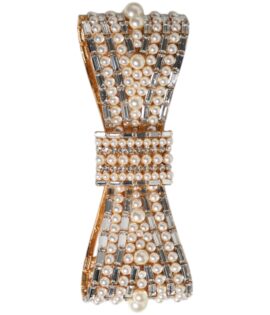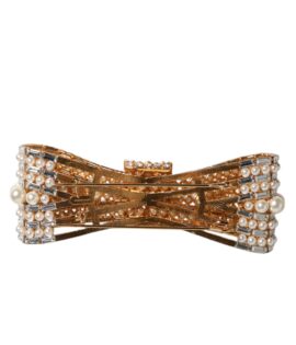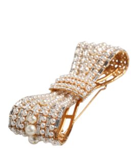 Dolce & Gabbana Gold Tone Brass Bow Crystal FauxPearl Embellished Brooch