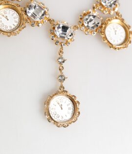 Dolce & Gabbana Gold Crystal Clock Pendant Statement Jewelry Necklace