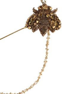 Dolce & Gabbana Gold Tone Brass Bee Embellished Chain Lapel Pin Brooch