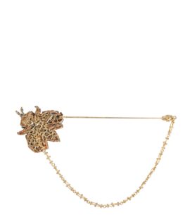 Dolce & Gabbana Gold Tone 925 Sterling Silver Leaf Crystal Chain Brooch
