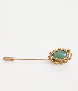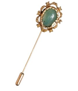 Dolce & Gabbana Gold Tone Green Stone Antique Men Accessory Brooch Pin