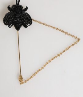 Dolce & Gabbana Lapel Pin Gold Brass Black Crystal Bee Accessories Brooch