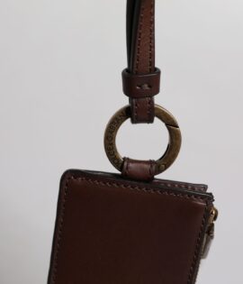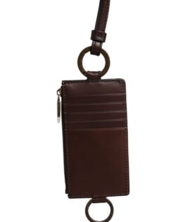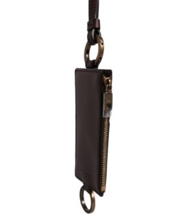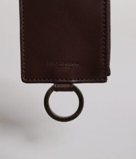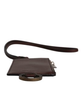 Dolce & Gabbana Brown Calf Leather Lanyard Logo Card Holder Wallet