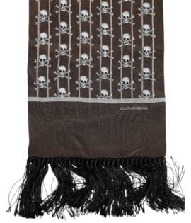 Dolce & Gabbana Brown Skulls Print Fringes Men Foulard Scarf