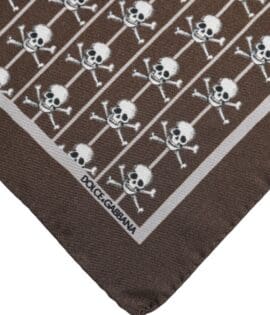 Dolce & Gabbana Brown Skull Silk Square Men Foulard Scarf