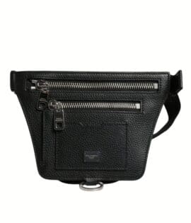 Dolce & Gabbana Black Calfskin Logo Plaque Belt Waist Men Fanny Pack Bag