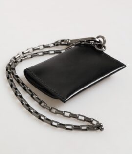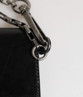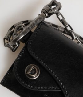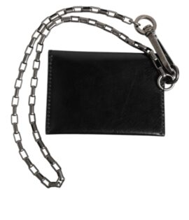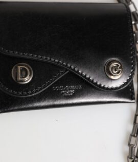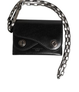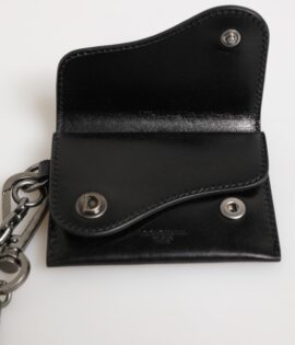 Dolce & Gabbana Black Cavallo Leather Wallet Chain Snap Bifold Card Holder