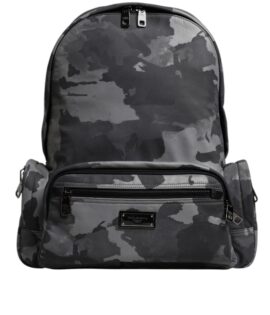 Dolce & Gabbana Gray Cotton Camouflage Logo Plaque Backpack Bag