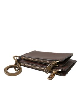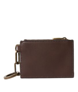 Dolce & Gabbana Brown Leather Zip Logo Keyring Coin Purse Keyring Wallet