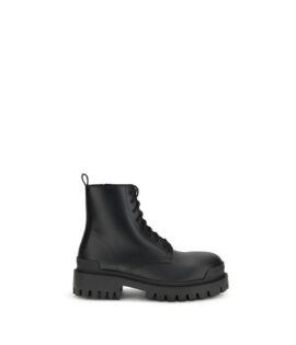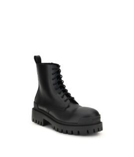 Balenciaga Black Calf Leather Bos Taurus Lace-Up Boots