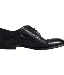 Dolce & Gabbana Dark Blue Leather Derby Wingtip Formal Shoes
