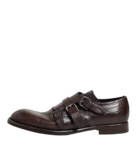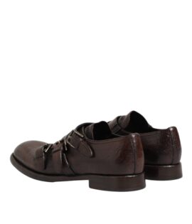 Dolce & Gabbana Brown Leather Monk Strap Formal Derby Shoes