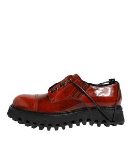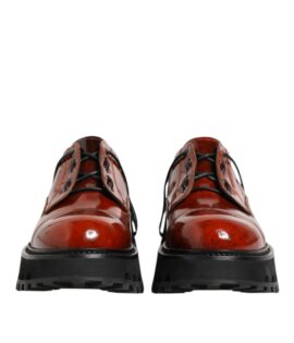 Dolce & Gabbana Brown Red Leather Lace Up Derby Dress Shoes