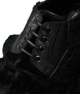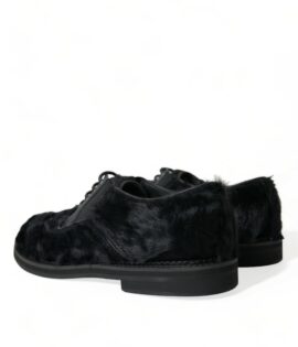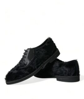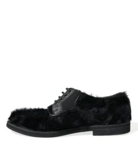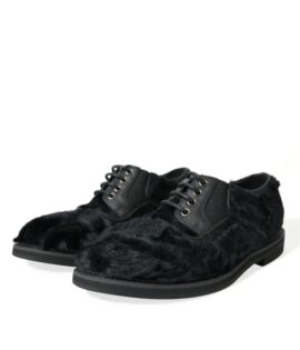 Dolce & Gabbana Black Fur Leather Lace Up Derby Dress Shoes