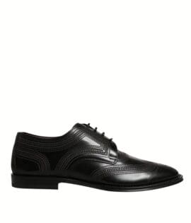 Dolce & Gabbana Black Embroidered Classic Leather Derby Dress Shoes