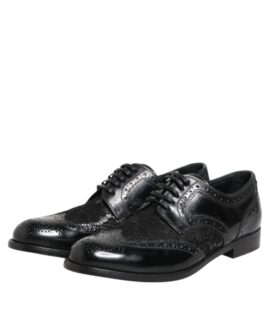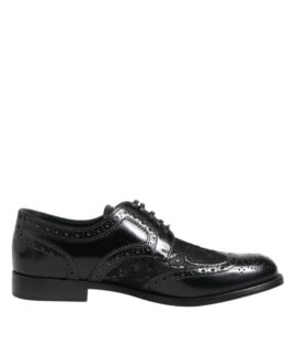 Dolce & Gabbana Black Leather Derby Wingtip Lace Up Formal Dress Shoes