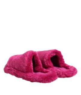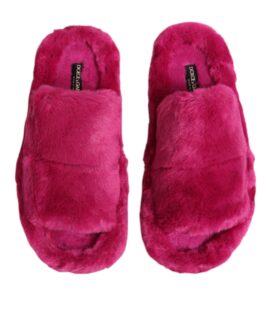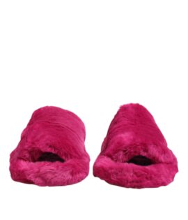 Dolce & Gabbana Pink Acrylic Faux Fur Mens Flats Sandals Shoes