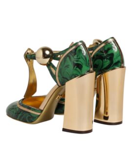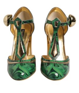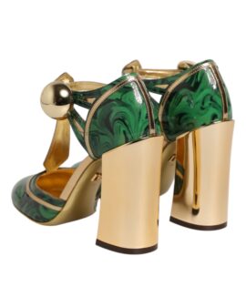 Dolce & Gabbana Green Leather T-STRAPS Heels Sandals Shoes