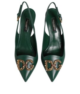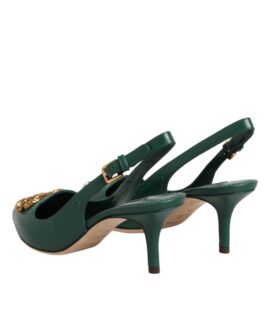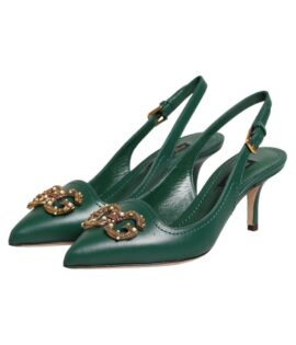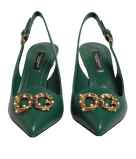 Dolce & Gabbana Green Leather AMORE Heels Slingbacks Shoes