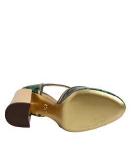 Dolce & Gabbana Green Silk MARY JANES Leaf Sandals Shoes