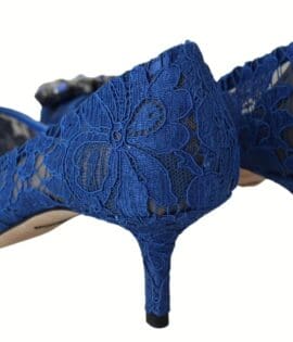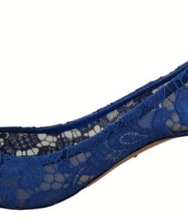 Dolce & Gabbana Blue Lace Crystal Ballet Pumps Shoes