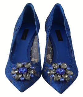 Dolce & Gabbana Blue Crystal Floral CINDERELLA Heels Shoes