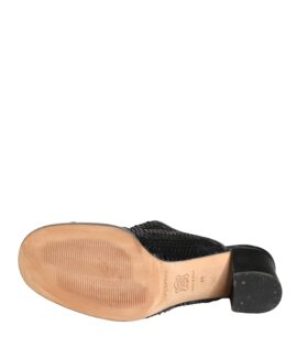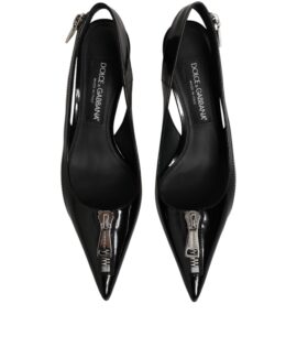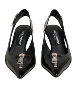 Dolce & Gabbana Black Zipper Leather Heels Slingbacks Shoes