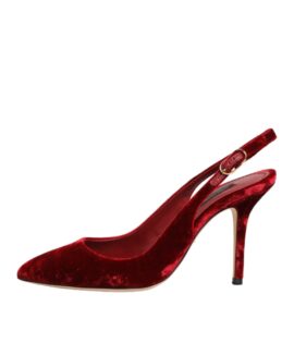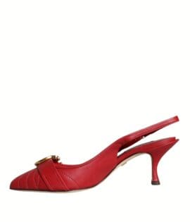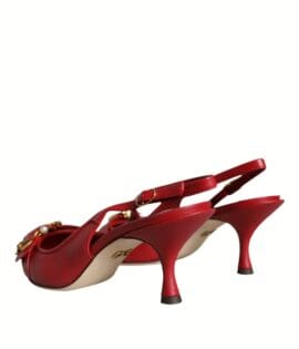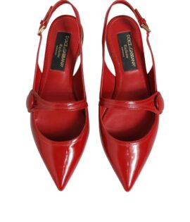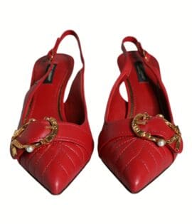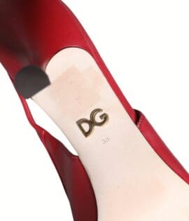 Dolce & Gabbana Red Devotion Leather Heels Slingback Shoes