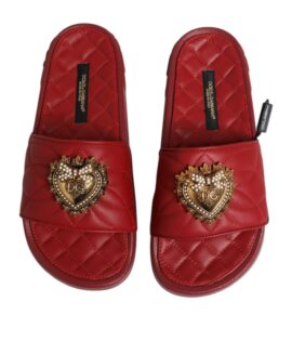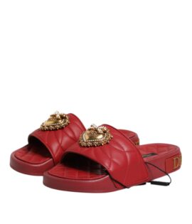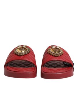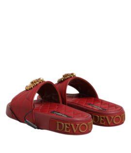 Dolce & Gabbana Red Devotion Matelassé Leather Slides Shoes