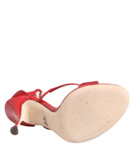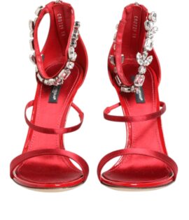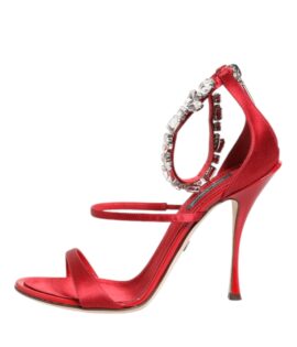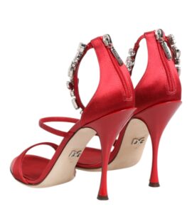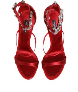Dolce & Gabbana Red Keira Satin Crystals Sandals Heels Shoes