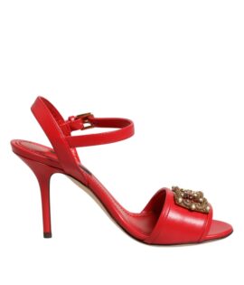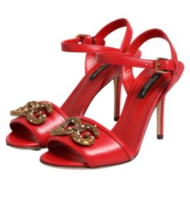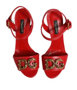 Dolce & Gabbana Red Leather DG AMORE Heels Sandals Shoes