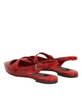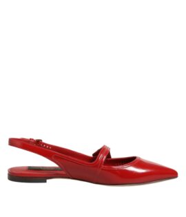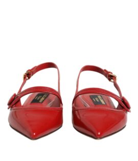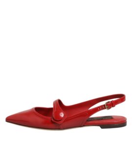 Dolce & Gabbana Red Leather Slingback Flats Sandals Shoes