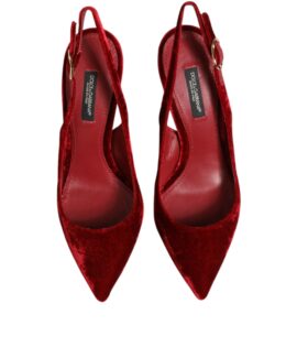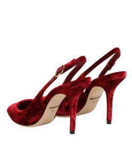 Dolce & Gabbana Red Suede High Heels Slingbacks Sandals Shoes