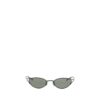 The geometric oval Sunglasses by Alexander McQueen combine modern design with distinctive style. Crafted from black acetate with smoked lenses, they feature an elegant geometric oval shape and are embellished with the McQueen logo laser-engraved on the temples for a sophisticated and recognizable touch.