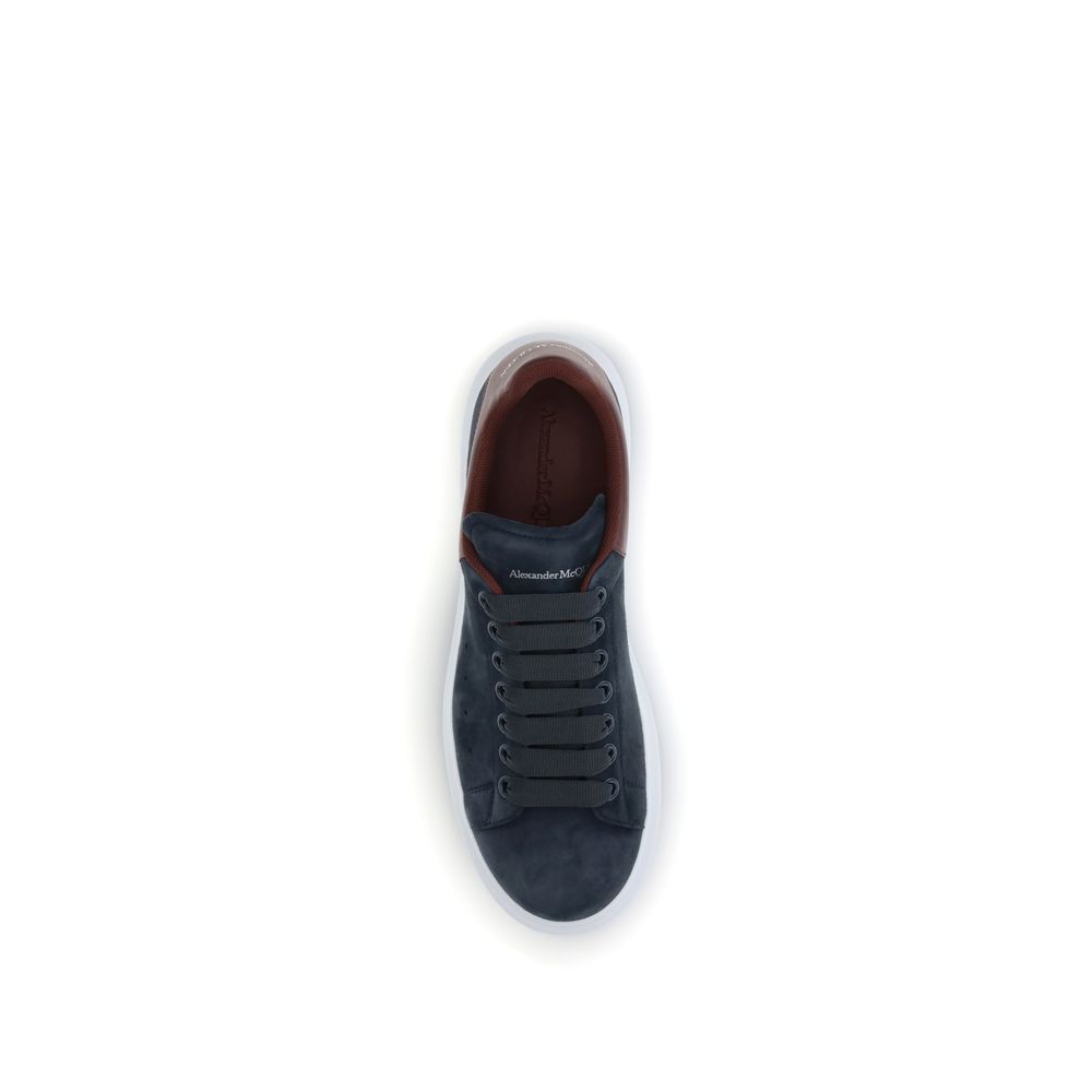 Le Sneaker Oversize di McQueen presentano una silhouette iconica in pelle scamosciata blu-grigia, con tallone in pelle bordeaux impreziosito dalla firma McQueen. La suola spessa in gomma conferisce un look distintivo e contemporaneo.