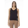 V-neck Tank Top. Neck And Bottom In Fine Ribbed Knit. Monogram Baldinini Trend In Metal.