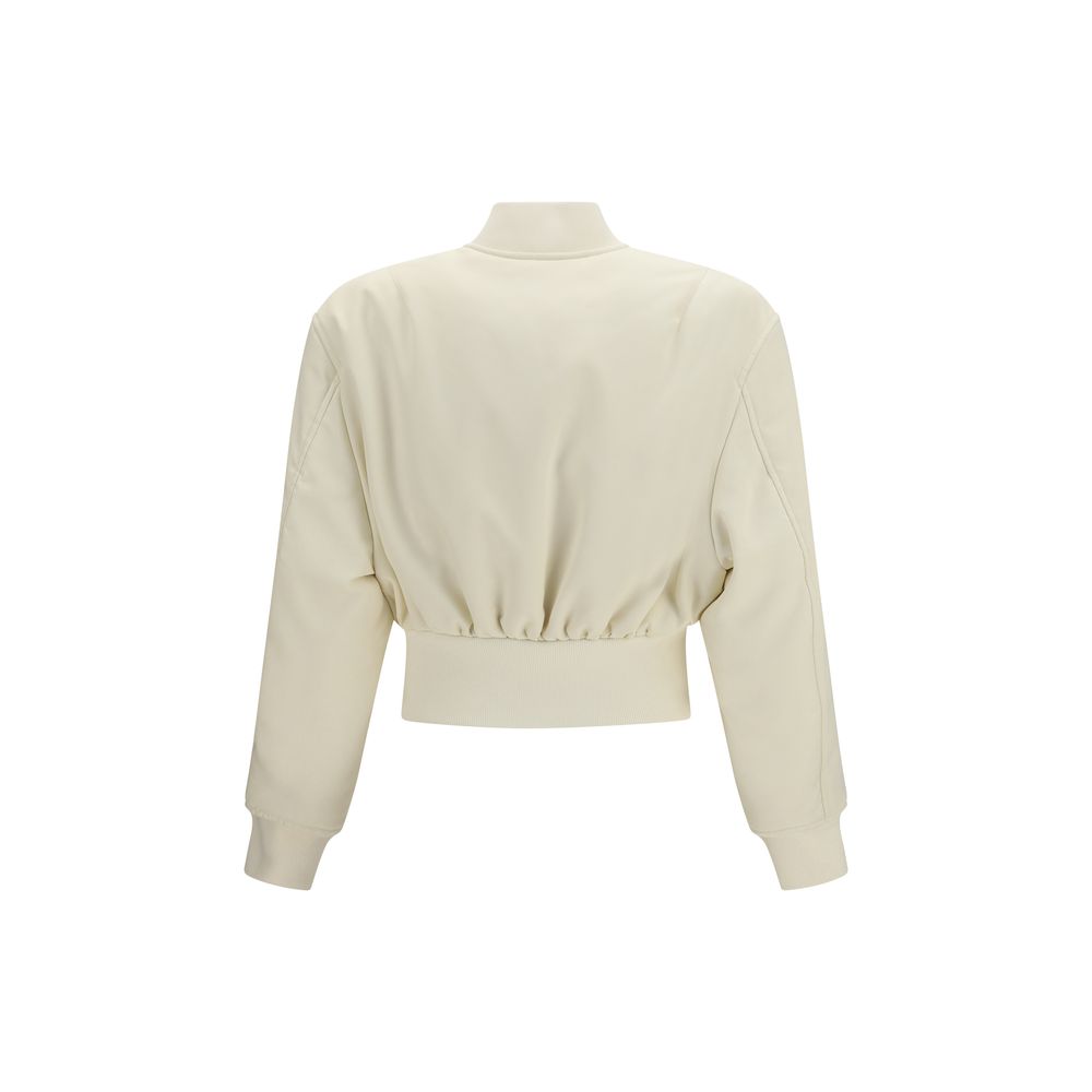 The cropped Bomber Jacket by Balenciaga in technical faille stands out for a contemporary and feminine silhouette. The bomber model features rounded sleeves that define the garment’s volume, while the front zip closure adds practicality. Two front slash pockets introduce a functional detail. Ribbed trims and the high gathered waistband enhance the silhouette. The cropped technical faille bomber jacket completes the design with a modern and distinctive style.