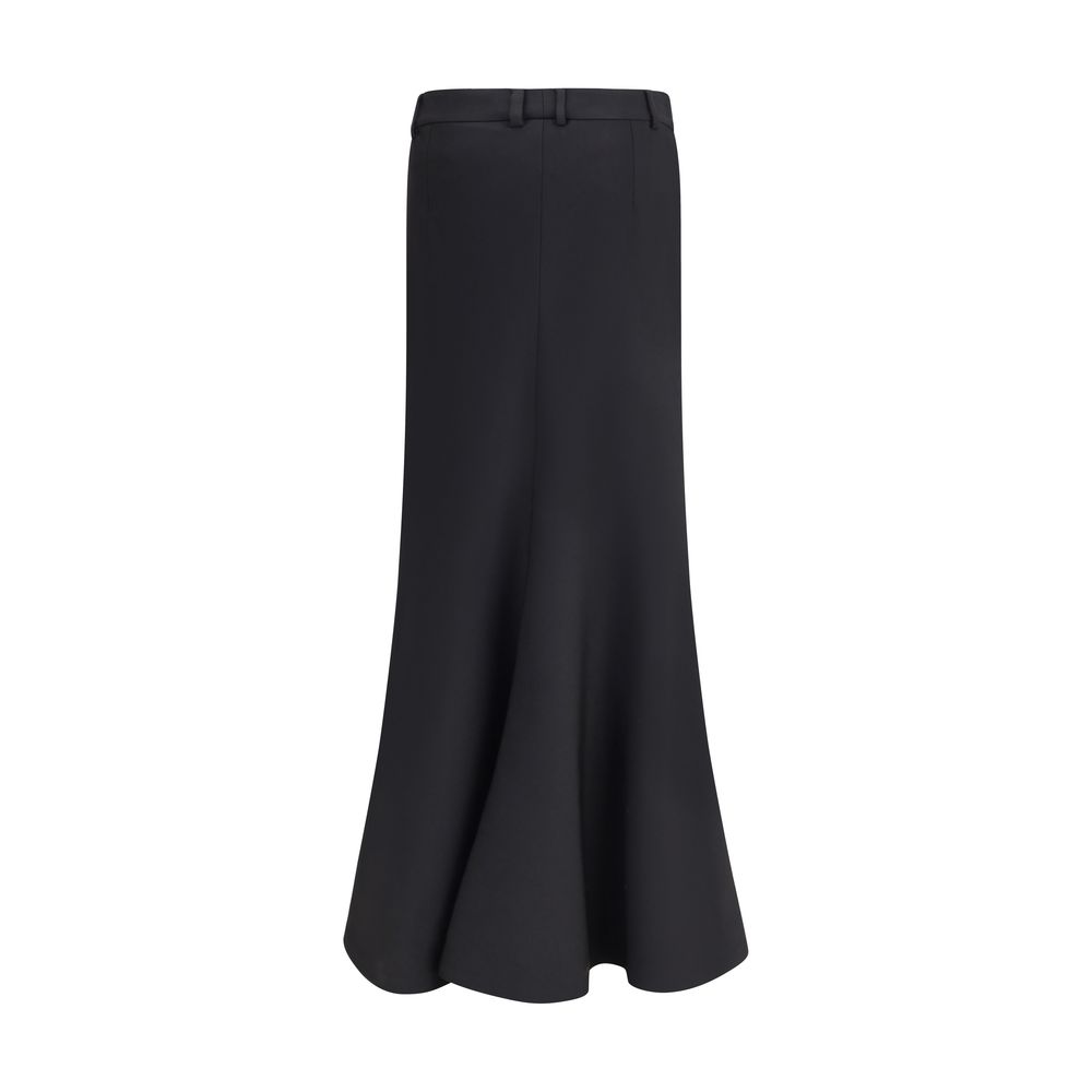 Balenciaga’s virgin wool Godet skirt-trousers feature a mid-rise waist, front buttons, belt loops and inner pants for a versatile and refined style.