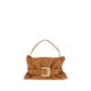 The Anthem Bag in suede leather by Balmain features a soft silhouette defined by an elegant and contemporary line. Crafted from suede, the design is characterized by a belt with loop and a suede-covered Anthem buckle that enhance its distinctive aesthetic. The handles combine suede and chain, offering versatile carry by hand or on the shoulder. The vintage metal frame with PB engraving and the metal PB logo on the back add an iconic touch, while the gold-tone zip closure ensures practicality. The interior, lined in cotton and linen fabric, is completed with a flat pocket and embossed suede card holder, combining functionality with refinement.