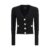 Cardigan by Balmain, cropped design, v-neck on front, closure by embossed buttons, close fit, monochrome pattern.