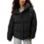 Black Polyester Jackets & Coat Made from 100% polyester Generous padding for excellent cold protection Relaxed fit for comfort Modern lines and high collar for elegance Front buttons for practicality and ease of wear Ideal for leisure activities and city outings Perfect to pair with jeans or comfortable pants Material: 100% Polyester Size on Tag: IT38|XS