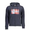 long-sleeved sweatshirt with hood, central pocket, print, logo