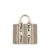 Canvas Woody Handbag by ChloƩ, two flat top handles, removable and adjustable flat leather shoulder strap, bands on front and back with contrasting iconic brand monogram, interior flat pocket, leather trim.