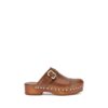 ChloĆ©’s Jeannette Mules reinterpret the classic clog model with a bold, contemporary style. Made of soft calfskin, they feature a solid wooden platform and a low wide heel for stability and comfort. The round toe, golden studs and iconic Paddington buckle complete the design with a distinctive touch and boho-chic character.