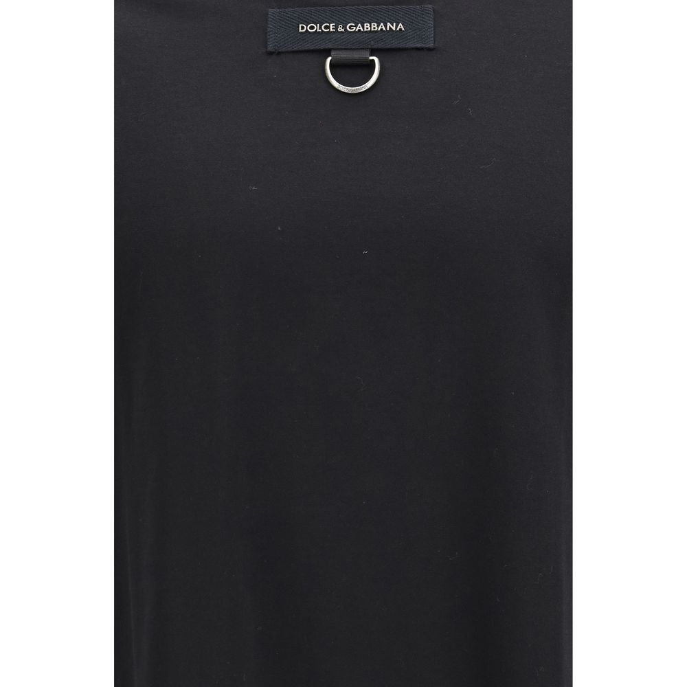 The Round neck short sleeve T-shirt with D-ring detail and logo detail by Dolce&Gabbana reinterprets essential design with a distinctive edge. The clean silhouette enhances its structure, while the D-ring element introduces a modern metallic accent that adds character. The logo of Dolce&Gabbana signs the piece with unmistakable identity, elevating a classic staple into a style statement. This T-shirt by Dolce&Gabbana stands out in an everyday wardrobe with confident sophistication.