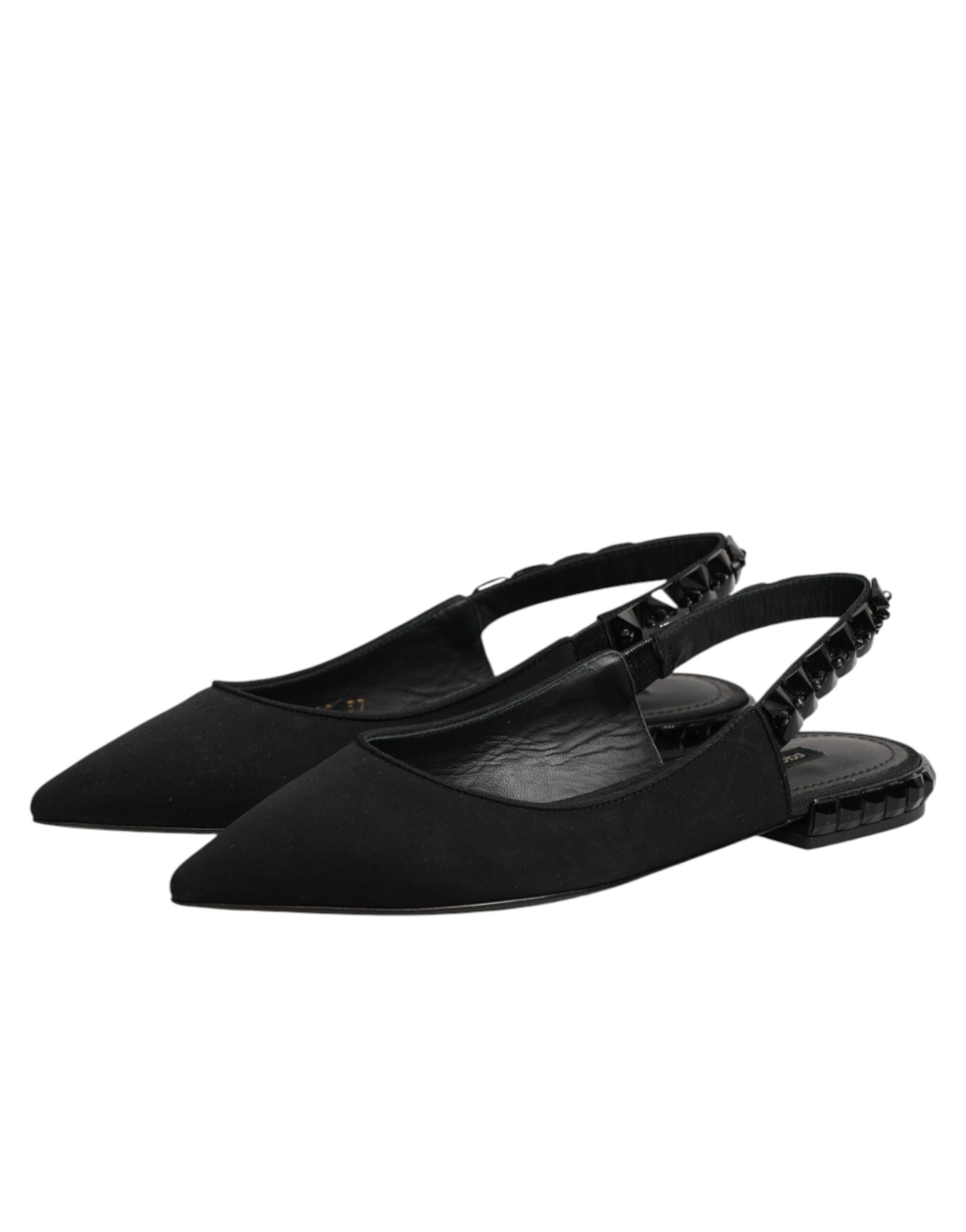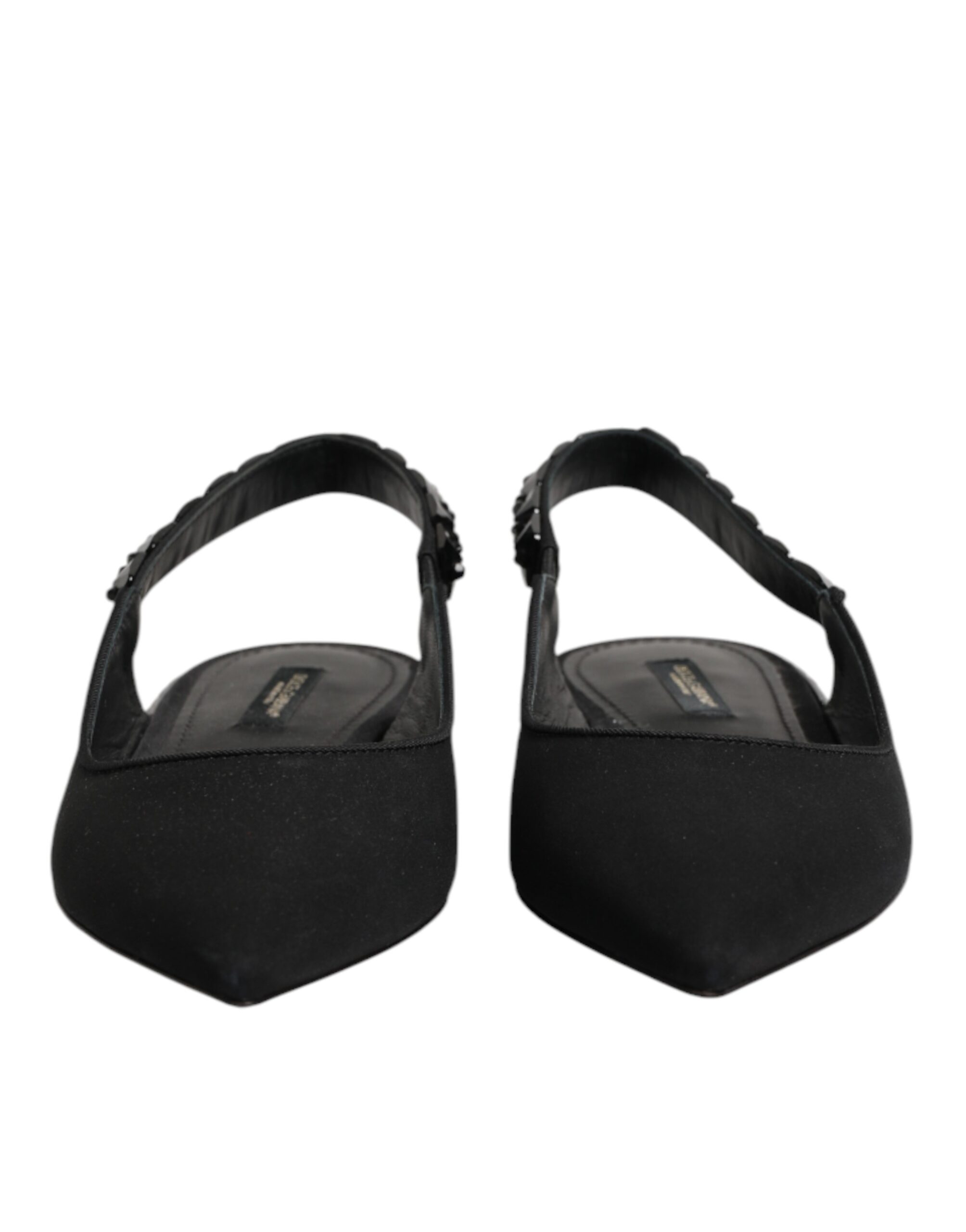 Gorgeous brand new, 100% Authentic Dolce & Gabbana Black Crystal Charmeuse Slingback Shoes exude timeless glamor and sophistication. Crafted from luxurious charmeuse fabric, they feature a sleek pointed toe adorned with sparkling crystal embellishments for an elegant finish. The adjustable slingback strap ensures a comfortable fit, while the slim heel adds refined femininity — perfect for evening events or formal occasions.