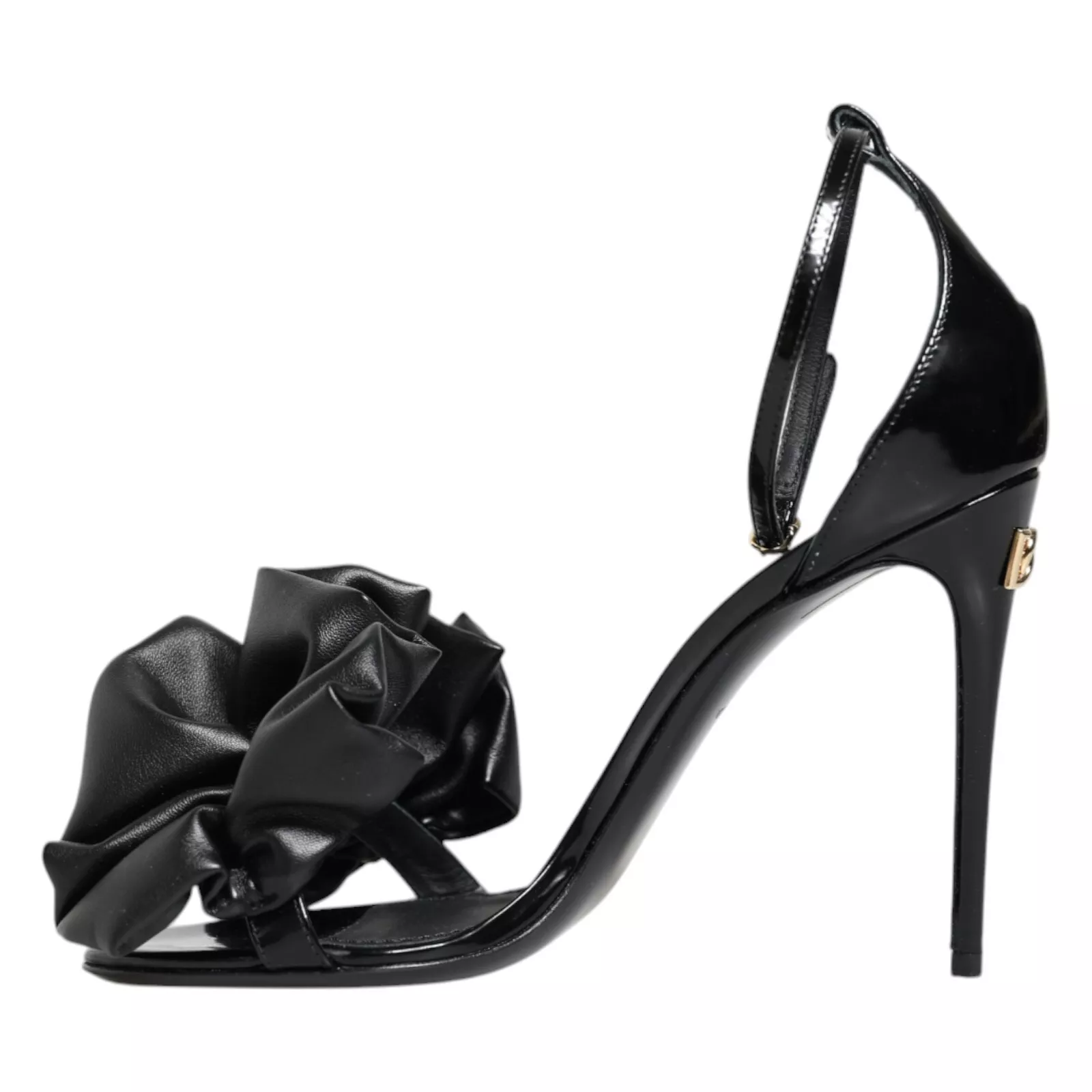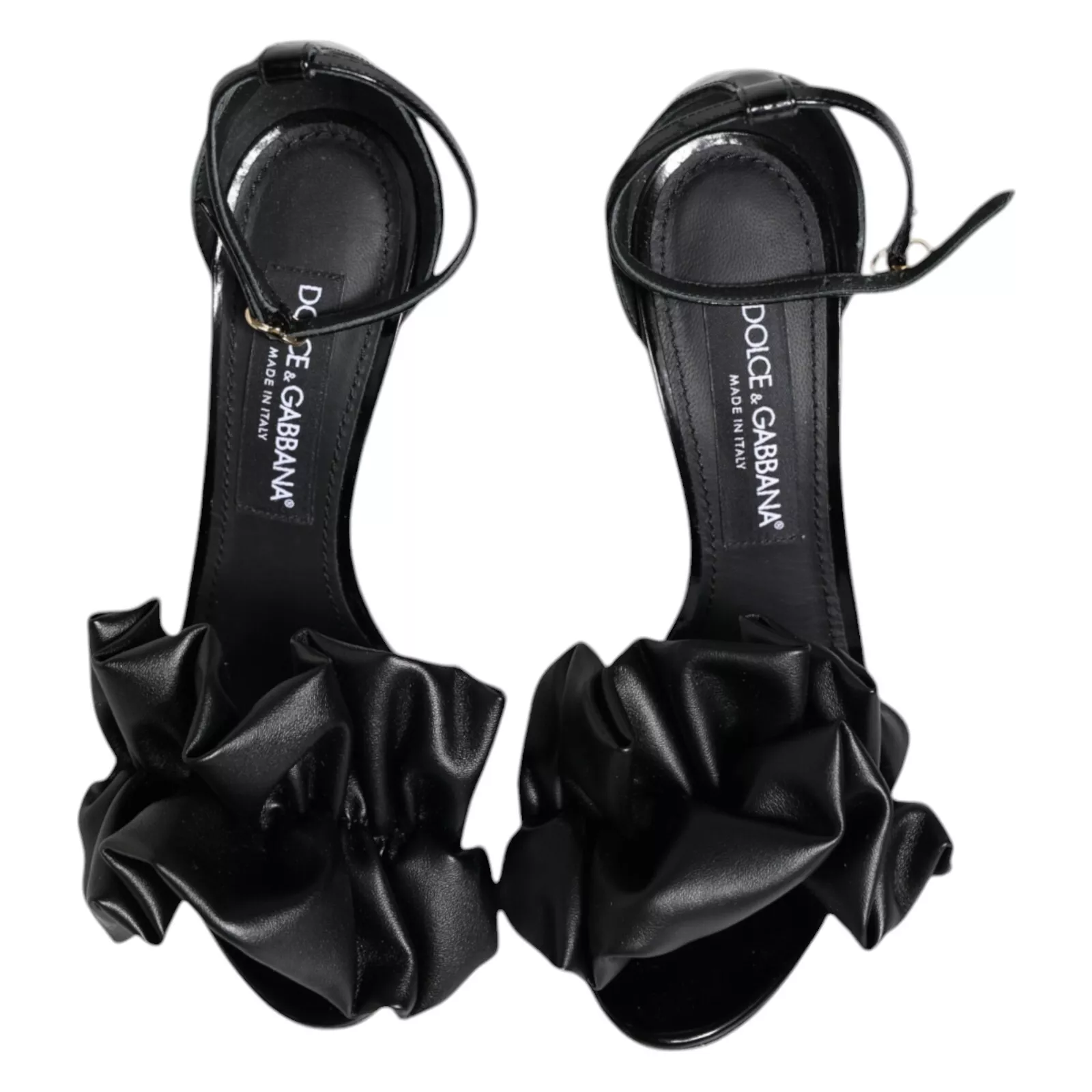 Gorgeous brand new, 100% Authentic DOLCE & GABBANA sandals are crafted from smooth black leather with elegant ruched detailing. Featuring a secure ankle strap and sleek high heels, they combine refined craftsmanship with Dolce & Gabbana’s timeless sophistication.
